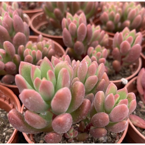 Nous aimons Sedum 'Robert Grim' pour ses couleurs changeantes au fil des saisons. Ce Sedum offre des variations de vert et de rouge selon qu'il est exposé au soleil ou à l'ombre. Ses tiges épaisses, elles restent bien rouge tout au long de l'année. Le feuillage oblongue, très charnu, est recouvert d'un léger duvet qui accroche la lumière et lui apporte un charme supplémentaire. Facile de culture, il forme un beau buisson à cultiver en isolé ou en composition avec d'autres Sedum ou Echeveria a développement moyen ou grand. Ne pas hésiter à tailler les tiges les plus longues pour favoriser sa ramification et densifier le buisson.