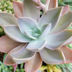 Graptopetalum paraguayense X Echeveria Gibbiflora. Schöne Pflanze! Robust und kräftig, die graptoveria 'Fred Ives' bildet lila rosa Rosetten 25-30cm Durchmesser. Sein Wachstum ist ziemlich schnell, seine Blüte ist lang und spektakulär.