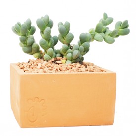 Joli plante grasse buissonnante au feuillage vert lumineux facilement reconnaissable par ses petites pointes oranges à l'api de ses feuille. Sa croissance est assez rapide, il se plaira parfaitement dans une jardinière ou une potée accompagné d'autres succulentes.