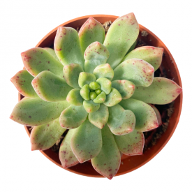 Echeveria 'Vienna' forma un pequeño arbusto de rosetas con tonos que van desde verde intenso a violacé según las estaciones y su exposición al sol. Muy prolífico y fácil de mantener, su crecimiento es generoso. Las hojas son muy gruesas y brillantes