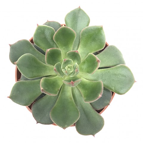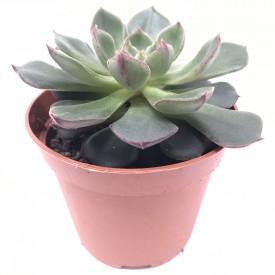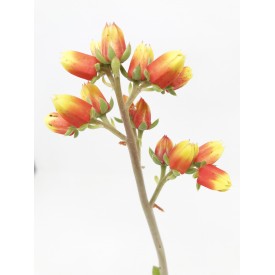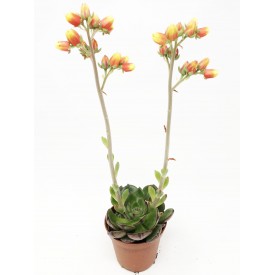 Hermosa roseta de unos diez centímetros de diámetro. Follaje verde oscuro, marrón. Floración naranja y amarillo muy brillante en un tallo alto. Híbrido de Echeveria setosa var. ciliata y Echeveria nodulosa.