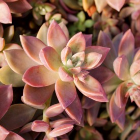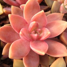 Excelentes variaciones de color durante todo el año siempre en tonos rosados pero más o menos intenso dependiendo de la temperatura, el brillo y las condiciones de crecimiento. Desde rosa pasada o rosa muy brillante, este híbrido no carece de interés en composición o pota. Crece en arbusto denso pequeño produciendo muchas rosetas.