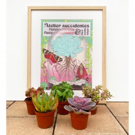 Notre illustratrice Manon Moisan s’inspire des merveilles de notre pépinière et du monde botanique fascinant des succulentes pour créer des œuvres pleines de vie et de poésie. Chaque illustration rend hommage à la beauté des plantes grasses et à la richesse du monde végétal botanique.