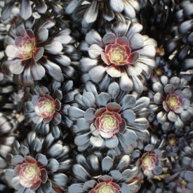 Un cultivar issu de Aeonium arboreum var. atropurpureum. Feuillage très foncé, presque noir, et brillant. Cet arbuste peut monter jusqu'à 80 cm de haut. Parfaitement adapté à la culture en pot.