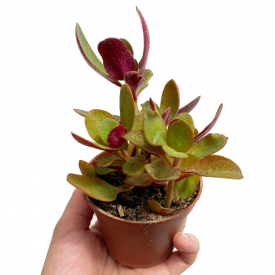 Crassula multicava est une vivace succulente vigoureuse. Il forme un buisson généreux qui s'étale sur une surface de 50cm environ. Ses feuilles sont vert foncé sur le dessus et rouge intense sur le dessous ce qui lui donne un intérêt certain.