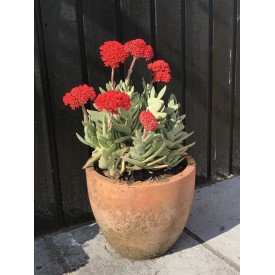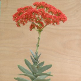 Le Crassula perfoliata var. falcata est une plante tout à fait singulière. Parfaitement reconnaissable par son feuillage tressé le long de sa tige qui, au fil des saisons peut monter jusqu'a 50 cm de hauteur. Il se ramifie aisément à la base de la plante, formant ainsi un joli buisson bleu.