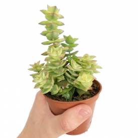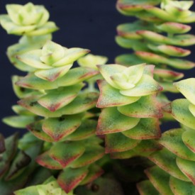 Feuilles vert et jaune, sans pétiole et jointes, empilées le long de tiges minces et rigides.