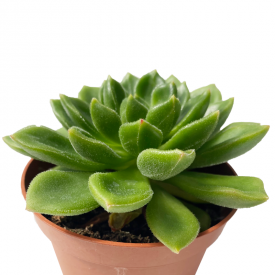 Belle rosette très charnue pouvant atteindre jusqu'à 20 cm de diamètre. Feuillage incurvé vert prenant d'attractives teintes rouges sur le rebords des feuilles au soleil ou en conditions arides. Robuste et facile de culture.