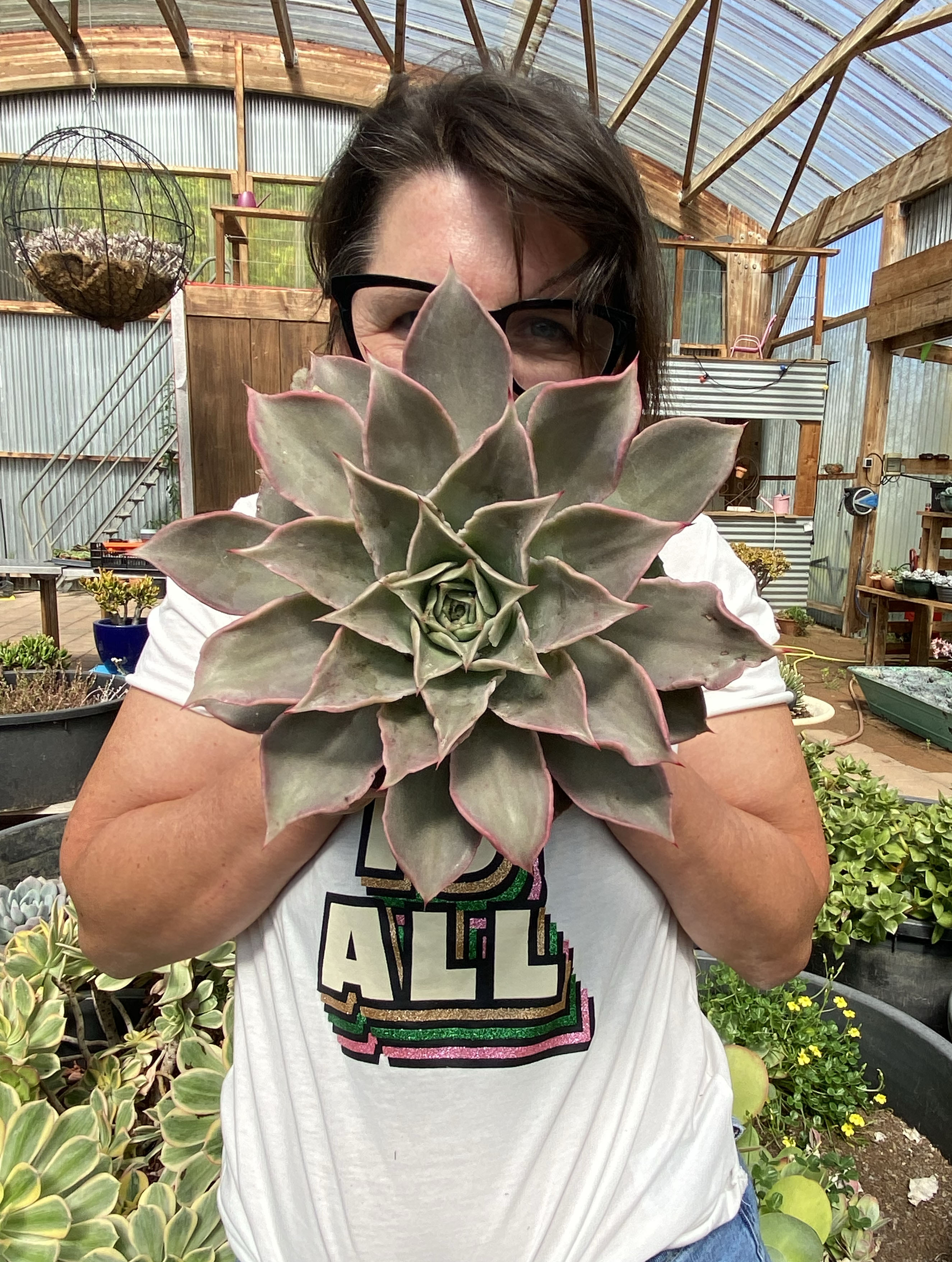 Echeveria 'Madiba' forme une rosette imposante, très charnue et rigide. Son feuillage est brillant, vert clair tirant parfois vers le bleu. Il s'avère être une plante très robuste, facile d'entretien et d'une grande élégance.