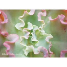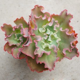 Connu aussi sous le nom de Echeveria crenulata x carnicolr. Grosses rosettes au feuillage ondulé pouvant faire 20cm de diamètre, prenant des couleurs roses rouges avec le soleil.