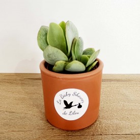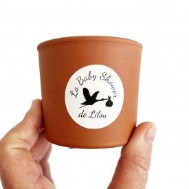 Je vous propose ce modèle d'étiquette pré-personnalisé sur pot en terre cuite. Indiquez-moi Le prénom de l'enfant ainsi que la date de sa baby shower et offrez un souvenir unique.