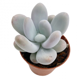Beaucoup la surnomment "Plante dragée" à cause de la forme de ses feuilles. Plante de petite taille au feuillage gris-blanc très charnues en forme de dragées. Prend des couleurs rosées l'hiver ou avec le soleil.