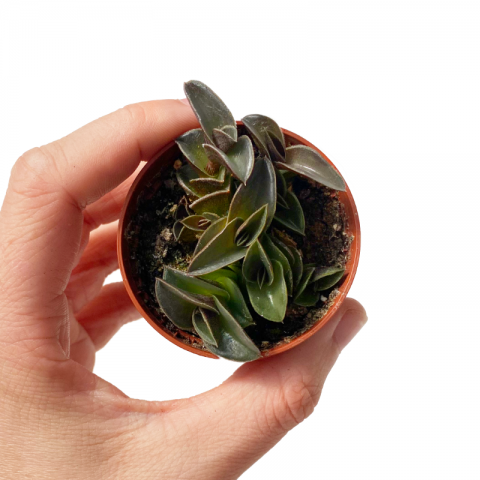 Plante au feuillage court et serré, disposé en pagode le long de la tige. Forme une belle touffe compacte. Plante tapissante avec une tendance a retomber, a cultiver en suspension ou en pot. Floraison mauve remarquable.