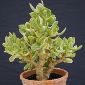 Crassula al porto dell'albero. Foliage variegato crema verde-bianco, a volte alcune sfumature rosa a seconda delle condizioni di crescita.