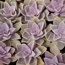 Rosette magnifiche 25-30cm di diametro con fogliame bluastro e stagnato con rosso. Fioritura estiva rossa.