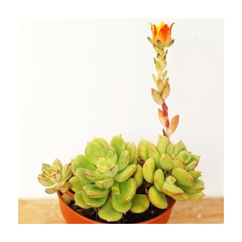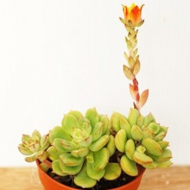 Piccola Echeveria formando un cuscino fitto di rosette verde chiaro. Interessante fioritura alla fine dell'estate su gambi corti.