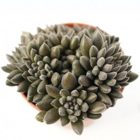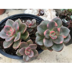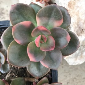 Echeveria ancora piuttosto rara, forma una rosetta di circa dieci centimetri di diametro, di colore rosso molto scuro, quasi marrone. Il suo interesse principale risiede nella temporanea depigmentazione delle foglie giovani, che le conferisce riflessi rosa brillante particolarmente attraenti.
