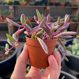 Conosciuto anche come Echeveria crenulata x carnicolr. Grandi rosette con fogliame ondulato che possono essere 20cm di diametro, prendendo colori rosa rosso con il sole.