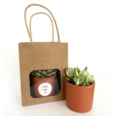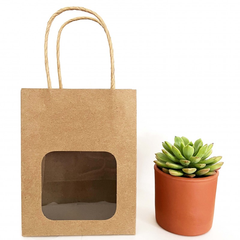 Sacchetto Kraft Deluxe con finestra. Ideale da regalare. Adatto a contenere un mini vaso di terracotta.