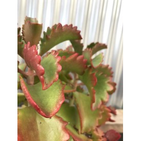 Kalanchoe con fogliame che assume colori eccezionalmente rossi quando si trova in una situazione arida, cioè durante una forte siccità o in un substrato impoverito. Altrettanto deliziosa è la sua fioritura primaverile gialla, montata su lunghi steli ben al di sopra del fogliame.